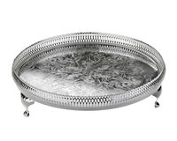 Поднос Gallery с декором, круглые ножки d23 см сталь 18/10, серебрение