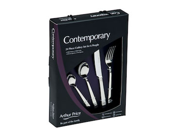 6 столовых ножей, 6 столовых вилок, 6 десертных ложек, 6 чайных ложек
