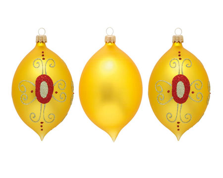 Набор шаров Nordlicht, 3 шт, желтые с красно-зеленым орнаментом